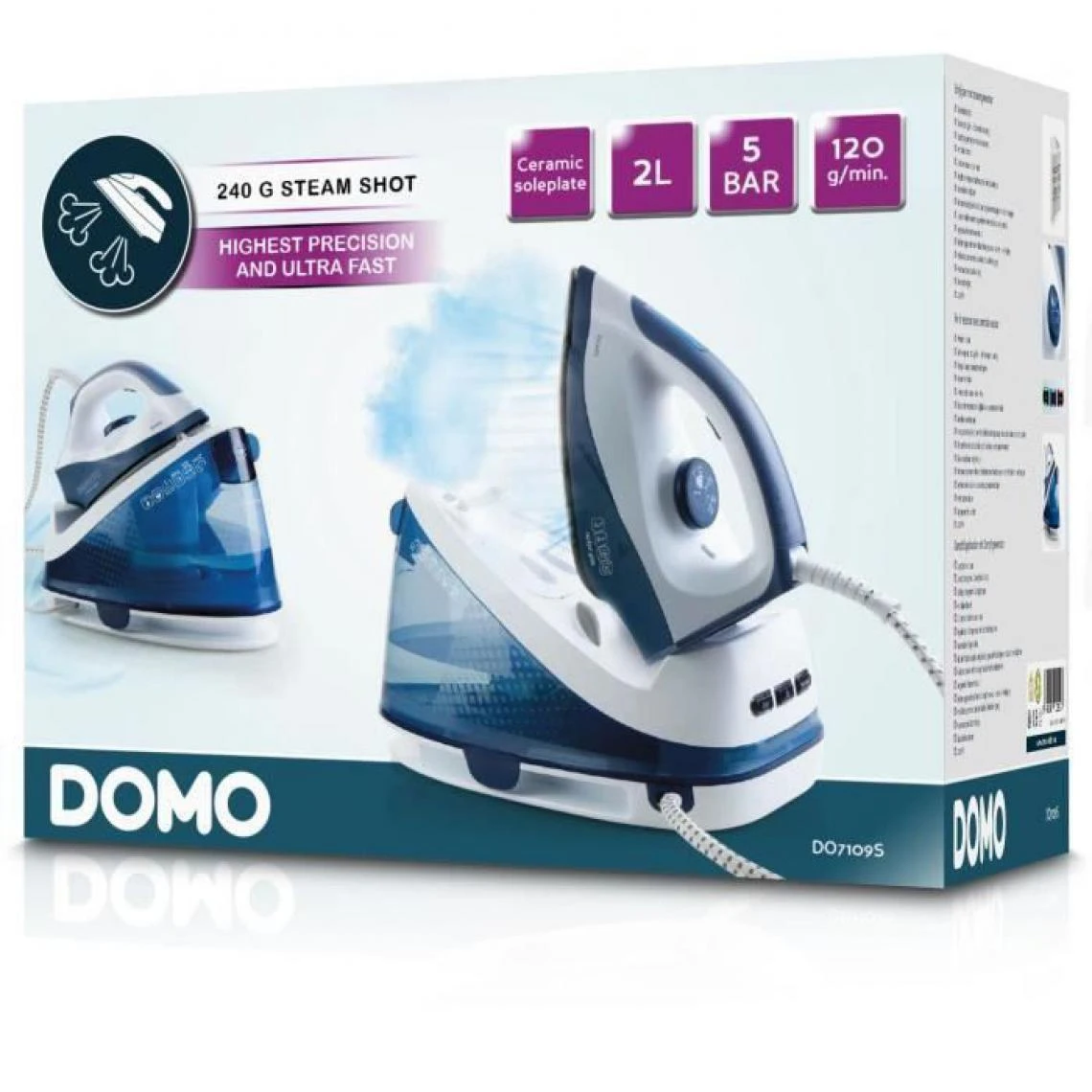 Points forts Domo Centrale vapeur 5bars 120gr/min autonomie illimitĂ©e – do7109s – DOMO