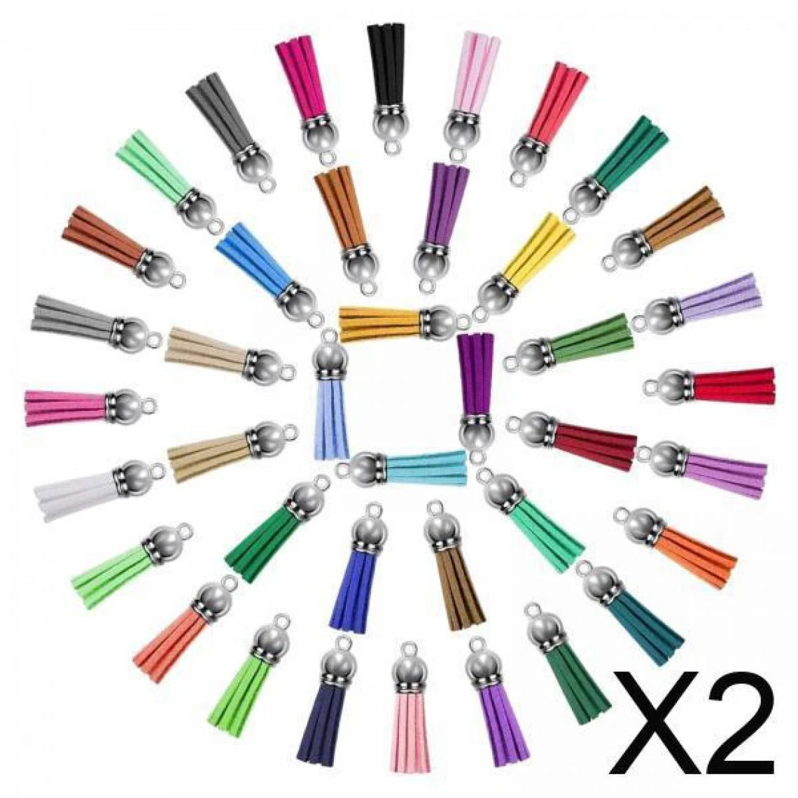 200 pièces vierges de glands de porte-clés (40 couleurs, chaque couleur pour 5 pièces) (paquet de 2)