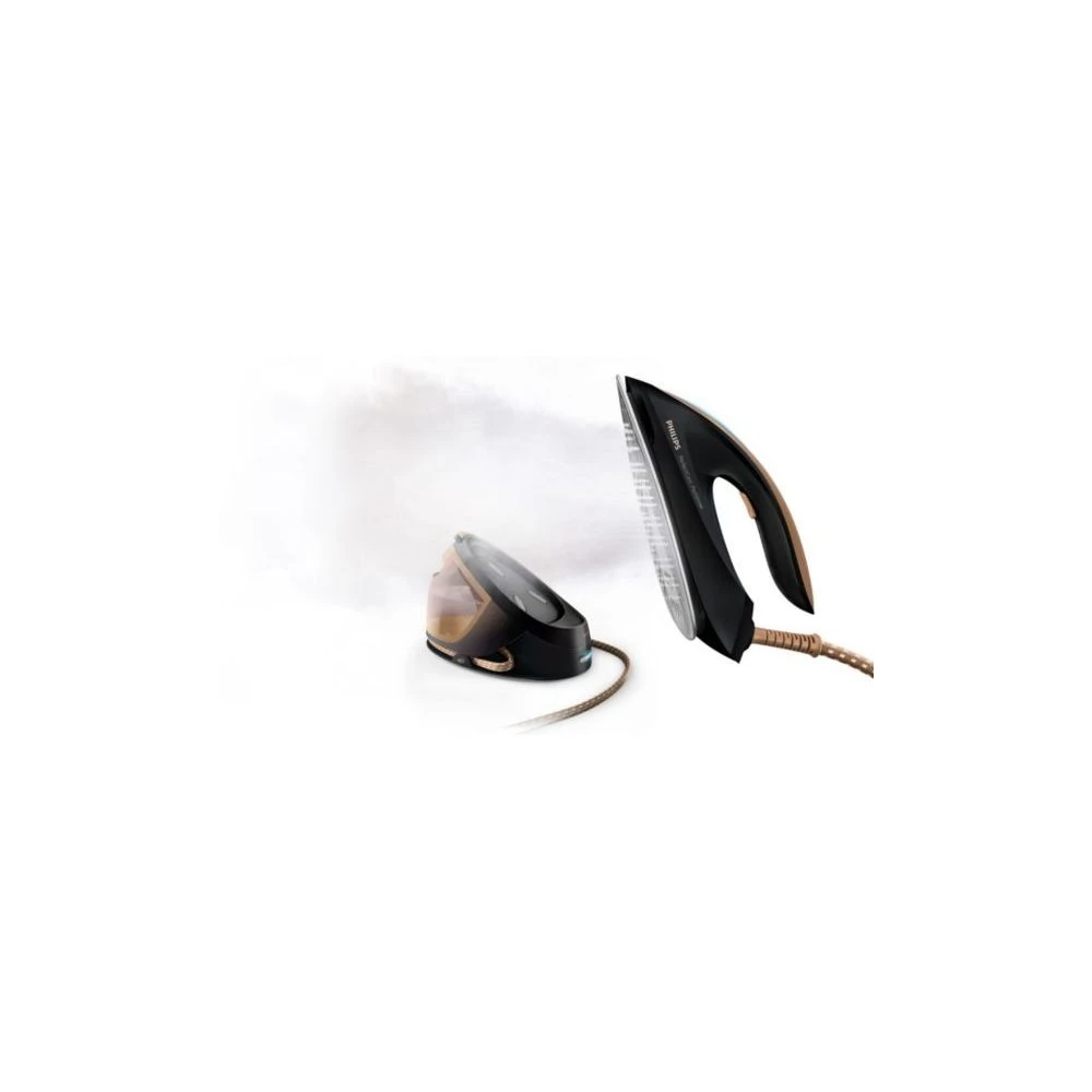 Points forts Philips PHILIPS GC8755/80 Centrale Vapeur PerfectCare silencieuse – 6,5 bars – 120g/min – effet pressing 450g – 1,8L amovible – noir
